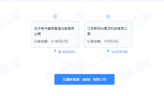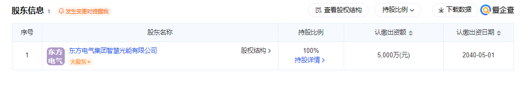股权穿透显示该公司由东方电气集团智慧光能有限公司100%持股。